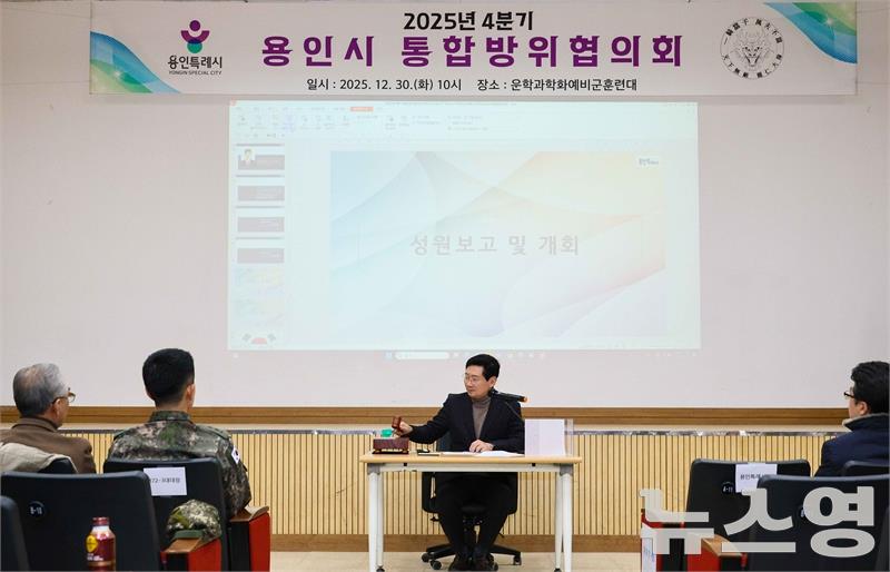 (뉴스영 이현정 기자) 이상일 용인특례시장은 30일 처인구 운학 과학화 예비군 훈련대에서 열린 '2025년 4분기 통합방위협의회'에 참석해 연말 지역 안보태세를 점검했다.이번 회의는 한 해 동안의 기관별 통합방위 추진 성과를 공유하고, 유관기관 간 협조체계를 점검하기 위해 마련됐다. 회의에는 통합방위협의회 의장인 이 시
