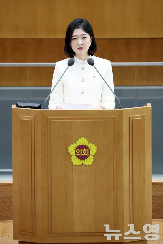 이혜원 의원이 지난 14일 행정사무감사에서 경기아트센터 방만한 경영을 지적하고 있다.