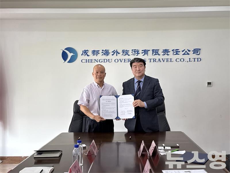 청두해외여유유한책임공사 MOU(왼쪽부터 리쭈하오 李杼浩 동사장, 조원용 경기관광공사 사장)/사진=경기관광공사