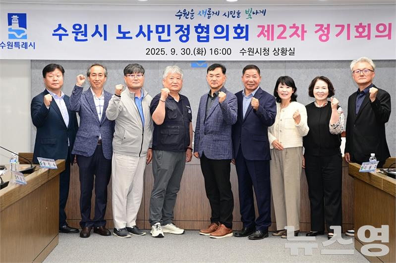 수원시 노사민정협의회 제2차 정기회의 참석자들이 함께하고 있다./사진=수원시