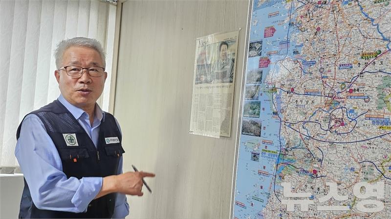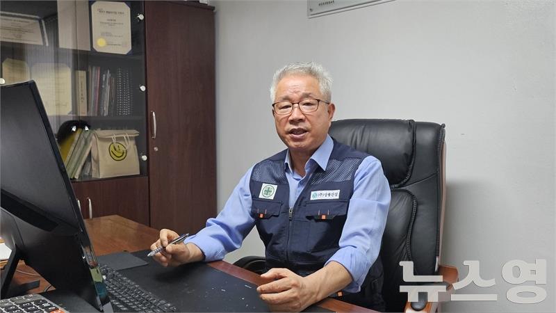 김인필 회장이 직접 개발한 장비를 소개하고 있다./사진=뉴스영