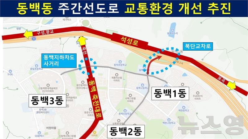 이어 "동백지하차도 사거리는 출퇴근 시간대 상습정체 구간으로, 동백1동에서 죽전방향 우회전 시 동백3동 차량과의 상충으로 혼잡이 심화되고 있으며, 회전반경을 고려하지 않은 도로 선형으로 구조적 위험성이 크다"고 지적했다.