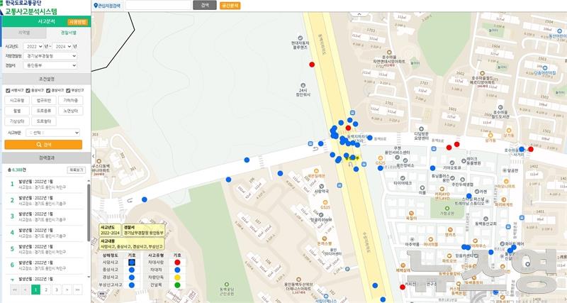 동백지하차도사거리 한국도로교통공단 교통사고분석시스템/사진=용인시의