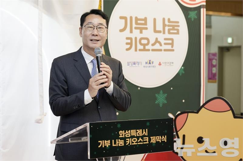 정명근 화성특례시장이 기부나눔 키오스크 제막식 기념사를 하고 있다./사진=화성시