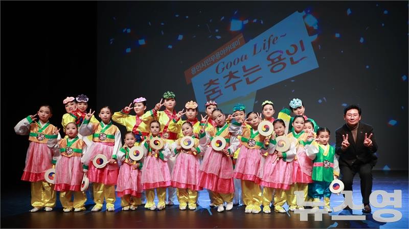 이상일 용인특례시장이 6일 용인시평생학습관 큰어울마당에서 열린 ‘용인시무용아카데미 작품발표회’에서 수강생들과 기념사진 촬영을 하고 있다./사진=용인
