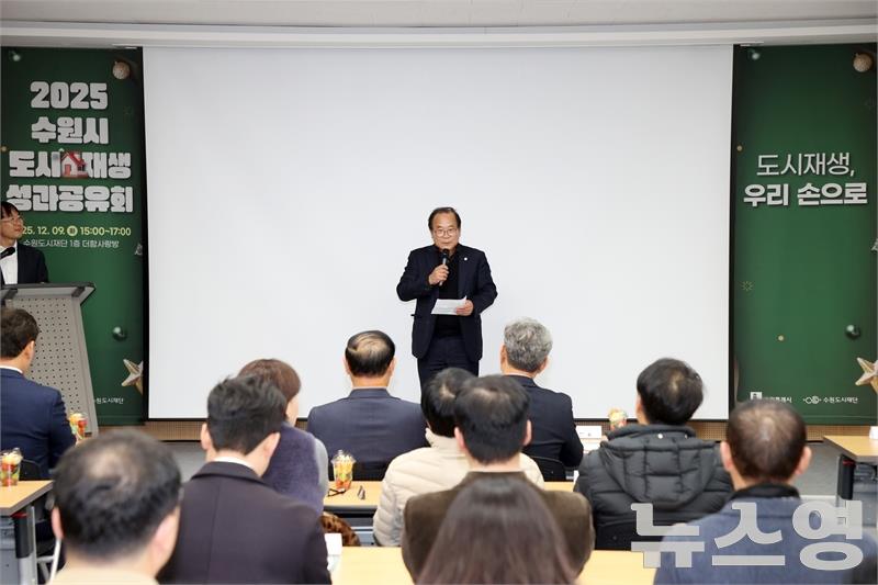 (뉴스영 이현정 기자) 수원특례시의회 이찬용 도시미래위원장이 9일 수원도시재단 더함사랑방에서 열린 '2025 수원시 도시재생 성과공유회'에 참석해 주민 주도형 도시재생 모델에 대한 지속적인 지원을 약속했다.