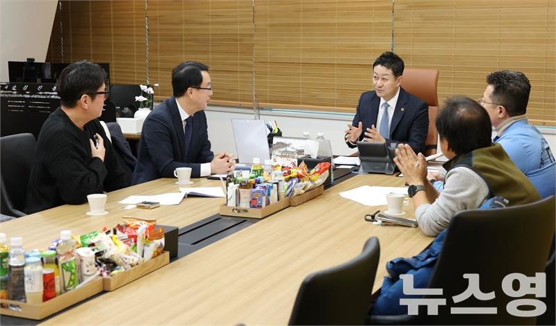 김진경 의장이 경기도 중고차 딜러협회 등과 매매 전문 자격제 도입 필요성에 대해 논의하고 있다./사진=경기도의회