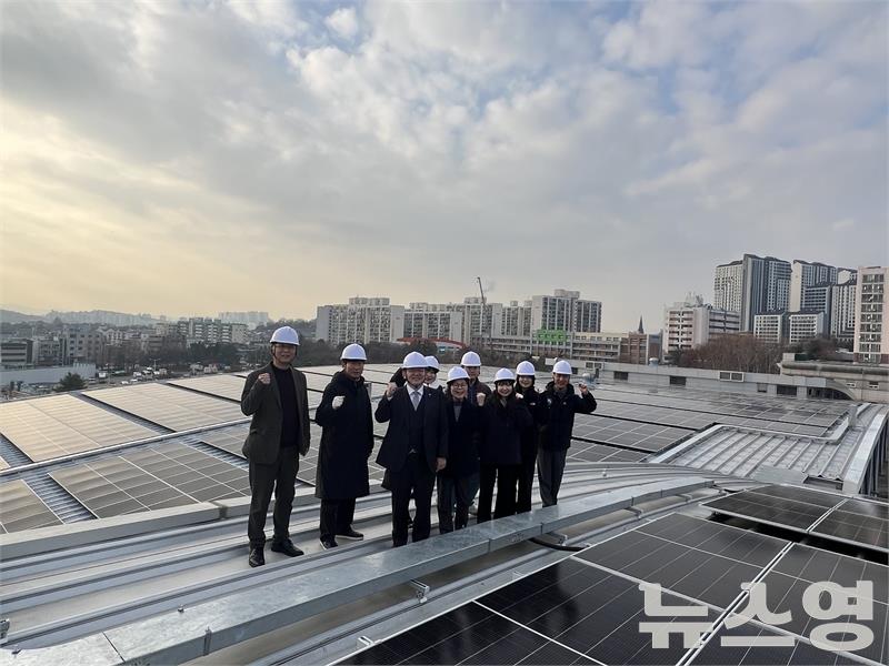 (뉴스영 이현정 기자) 경기도는 15일 수원월드컵경기장 스포츠센터 옥상에 설치된 태양광발전소를 방문해 공공시설 유휴부지를 활용한 재생에너지 공급 확대 현황을 점검하고 공공부문 RE100 달성을 위한 추진 상황을 공유했다.