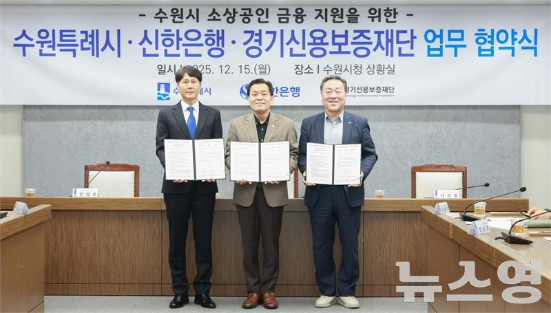 (뉴스영 이현정 기자) 수원특례시가 신한은행, 경기신용보증재단과 협력해 소상공인을 대상으로 금융 지원을 한다.세 기관은 15일 시청 상황실에서 업무협약을 체결하고, 수원시 소상공인들에게 특화 금융서비스(대출)를 제공하기로 했다. 신한은행은 5억 원을 출연해 소상공인 대상으로 대출상품을 운용하고, 경기신용보증재단은 출연액