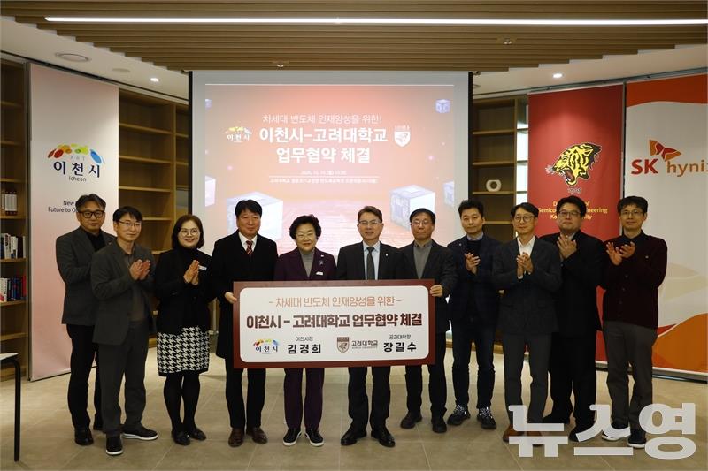 (뉴스영 이현정 기자) 이천시가 반도체 산업 중심지로서의 지역 특성을 살려 차세대 인재 양성에 나섰다.이천시는 15일 고려대학교와 지역 학생들의 교육 기회 확대와 차세대 반도체 인재 양성을 위한 업무협약(MOU)을 체결했다고 밝혔다. 이번 협약은 SK하이닉스 등 반도체 산업 기반을 갖춘 이천시의 지역적 특성과 SK하이닉