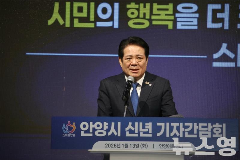 (뉴스영 이현정 기자) 최대호 안양시장이 13일 민선8기 마지막 해를 맞아 'AI 중심 도시 대전환'을 핵심 목표로 제시하며 K37+벨트를 중심으로 한 혁신 클러스터 조성에 본격 나선다.최 시장은 이날 안양아트센터 컨벤션홀에서 열린 신년 기자간담회에서 "올해 시정 운영 방향을 'AI시대, 변화와 혁신을 넘어 시민의 행복