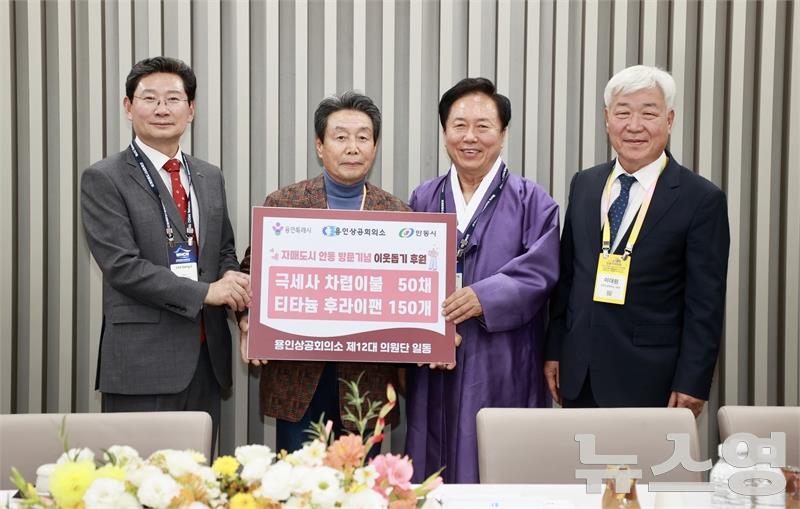 이날 용인상공회의소는 자매도시 안동 방문을 기념해 차렵이불과 후라이팬 등 이웃돕기 물품을 전달했다.