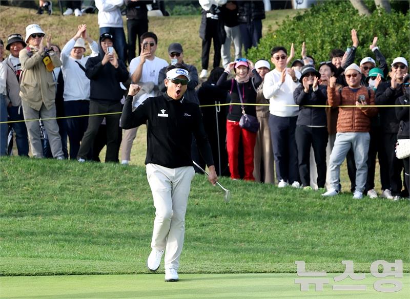 박상현이 마지막 홀 버디를 성공하며 기뻐하고 있다./사진=KPGA