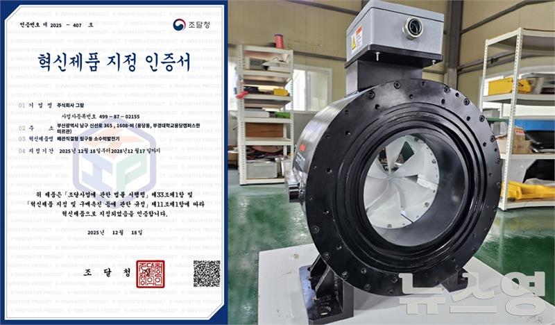 (뉴스영 이현정 기자) 소수력발전기 전문기업 ㈜그람의 '배관 설치형 림구동 소수력발전기'가 조달청 2025년 5차 혁신제품으로 지정됐다.