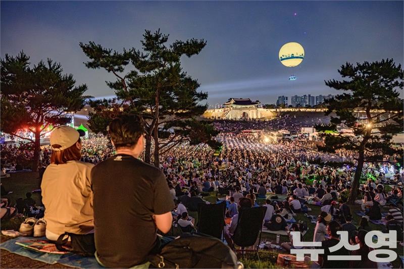 수원시민과 관광객들이 수원시 대규모 문화공연 중 하나인 수원화성헤리티지콘서트를 관람하고 있다./사진=수원시